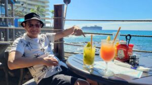 The Port of Kona is so small that Everywhere we went , there’s our ship as the back drop