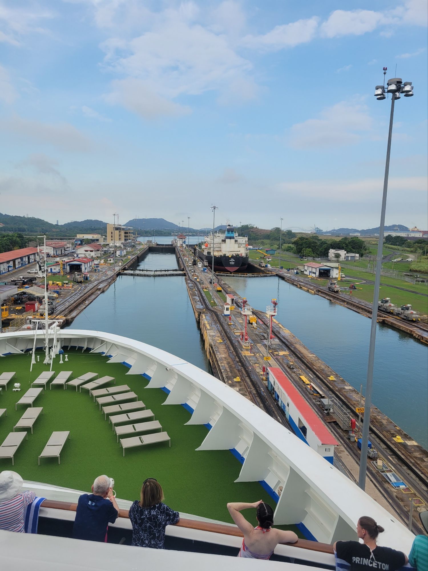 Took about 3 hours to arrive at the second lock Pedro Miguel lock to begin our descend into Pacific ocean