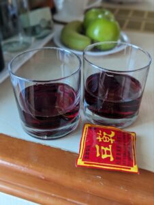 On drinks… We called our blog site happy hours Ahoy because we thought we are going to drink every afternoon like we used to. Turns out we don’t feel the need to do this daily anymore…. Maybe every couple of days…. Heres one with delicacy P brought 😉… Yes, with all the abundant food selections on the ship, we are delighted with this classic Taiwanese snack..