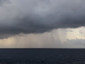 When we are approaching Antigua, saw clouds dispensing rain from afar…