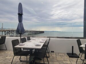 Stopped at goleta’s Ellwood restaurant for lunch…. Perfect sea front view with a wooden pier…. The sea today has a green hue…. Blue and green and so very pretty